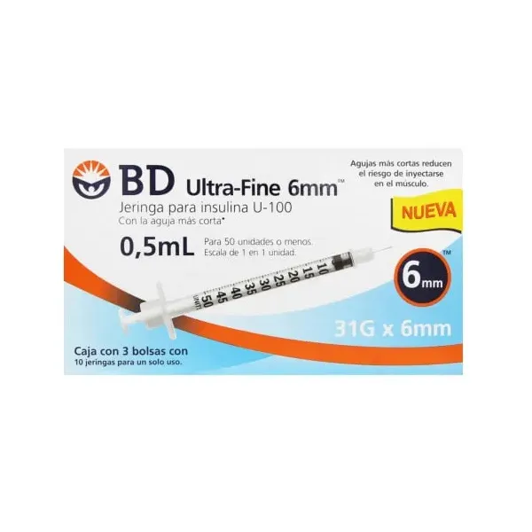 BD Ultra-Fine Jeringa 0.5ML 31GX6MM 30 Piezas