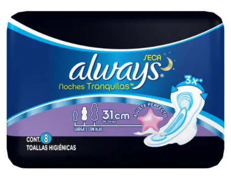 Always Nocturna Flujo Abundante Con Alas 8 Toallas