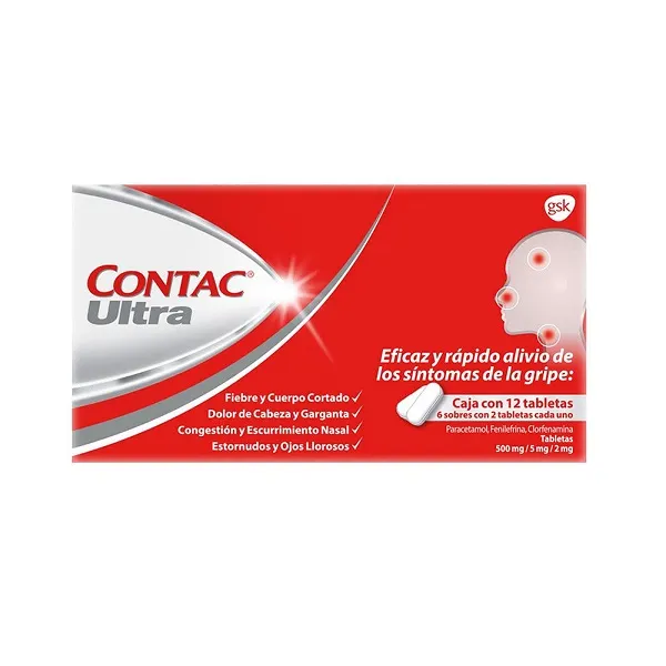 Contac Ultra Paracetamol/Fenilefrina/Clorfenamina Caja 12 Tabletas