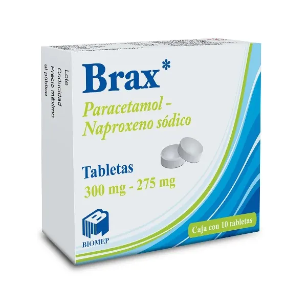 Brax (Paracetamol/Naproxeno sódico) 10 Tabletas