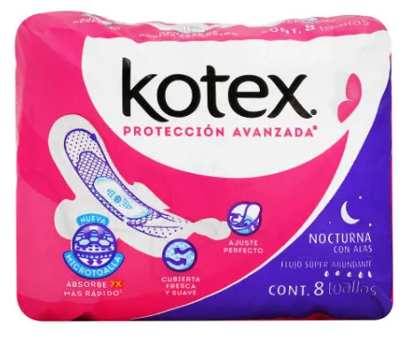 Toallas Kotex Nocturna con Alas 8 piezas