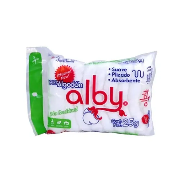 Nombre: Alby Algodón Plizado Ingrediente activo: Forma farmacéutica: Algodón plizado Concentración: 25 g Presentación: Bolsa Contenido: ... Read More